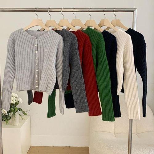 [신상오픈런]여자 도톰 데일리룩 크롭 라운드넥 골지 7컬러 가디건