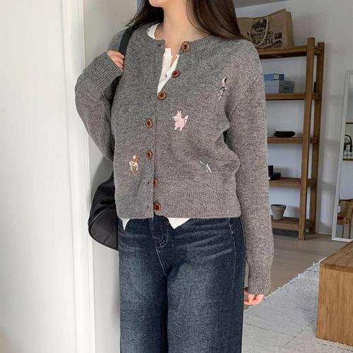 [시크블랙]츠요디 도톰 동물자수 니트 가디건