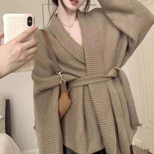 [셀러허브_여성트랜드패션]ONM 여자 봄 가을 니트 롱가디건 도톰 두꺼운 아우터