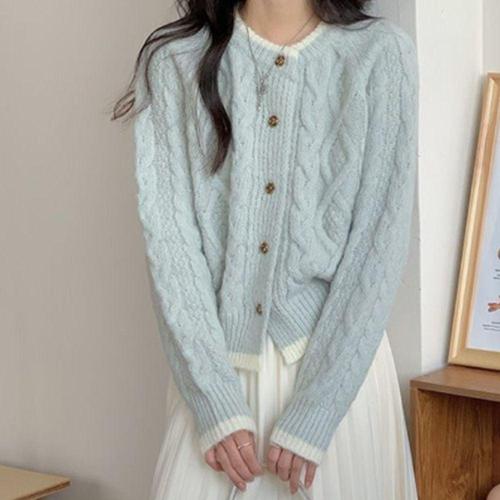 도톰 꽈배기 라운드 숏 크롭 니트 가디건 스웨터 WFLX692