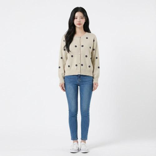 (N) 릴리 도트 니트 가디건 라운드넥 스웨터 아우터