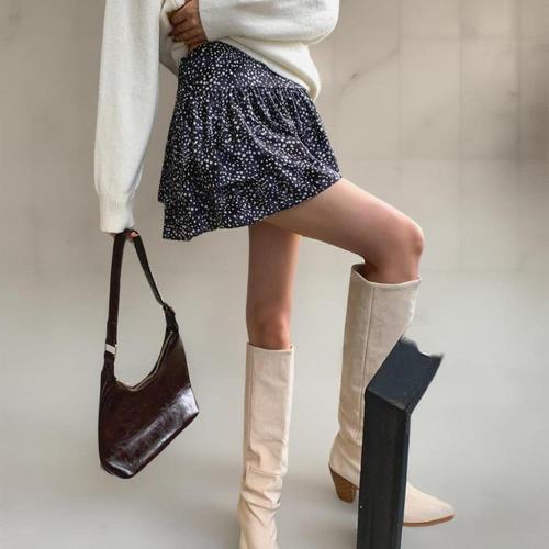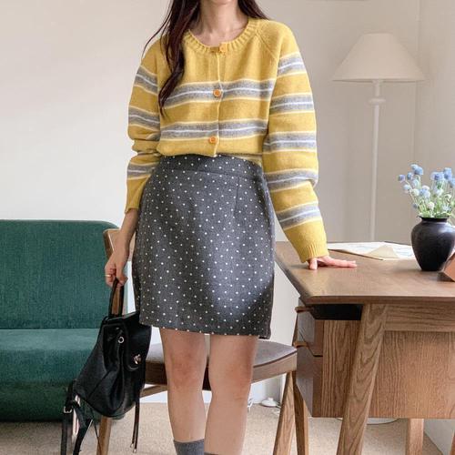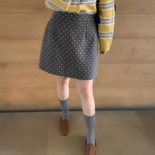 [행복여] 멜리 도트 땡땡이 모직 텍스쳐 밴딩 스커트