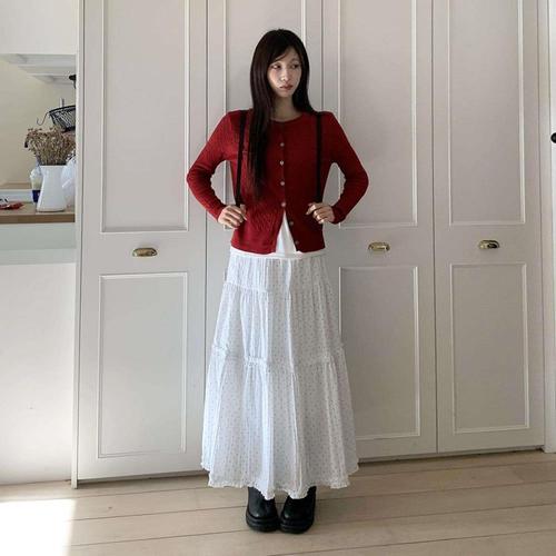 [옷자락] 여성 계절감 도트 프릴 롱 스커트