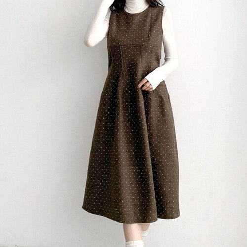 에르디테 / 여성 겨울 땡땡이 도트 레이어드 플레어 a라인 나시 롱 원피스 2컬러