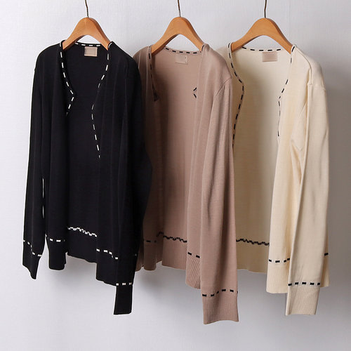 빅사이즈라인가디건 B967L501 도티드라인니트가디건 RM