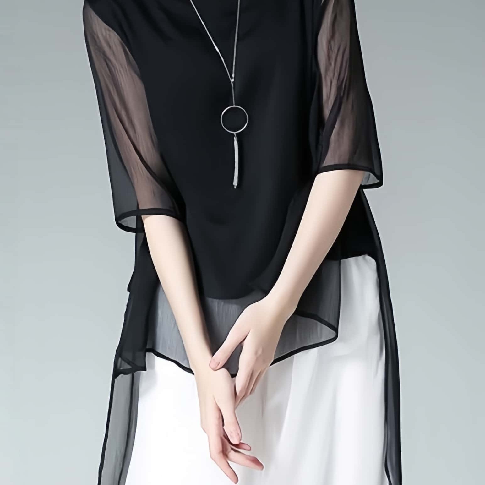 TEMU 플러스 사이즈 시폰 블ouses, 스타일리시한 플러스 사이즈 여성용 미디엄 소매 루즈핏 프렌치 스타일 상의