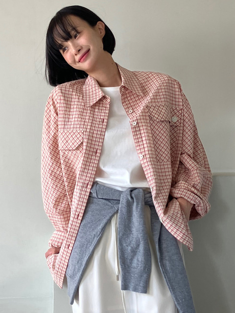 [하시에] 오버사이즈 돌먼 슬리브 체크 셔츠