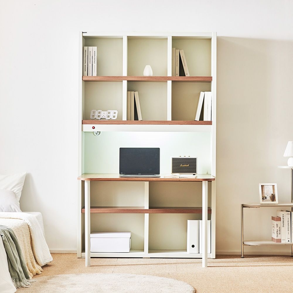 책장 책상 일체형 컴퓨터/공부/게이밍 ㄱ자 책상 고등학생/학생 책상, 연한 갈색(B)