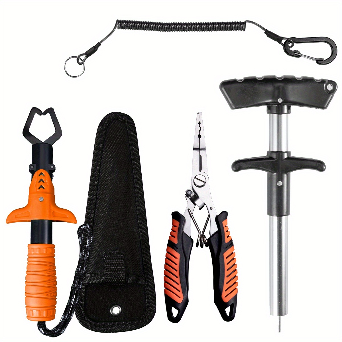 TEMU 5개 다기능 낚시 도구 세트 (물고기 입 집게, 패브릭 가방, 낚시 플라이어, 훅 리무버, 텔레스코픽 로프 포함), 야외 담수 및 바닷물 낚시꾼 필수품, 배터리 없음