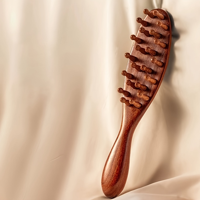 TEMU 곱슬머리를 위한 샌데시 우드 브리슬 헤어 브러시, 로즈우드 핸들 두피 마사지 빗, 홈 헤어 케어용