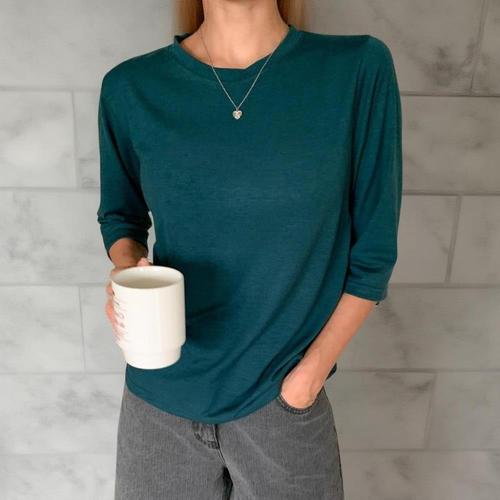 [옷자락]여성 슬림핏 레이온 스판 뒤트임 8부 티셔츠