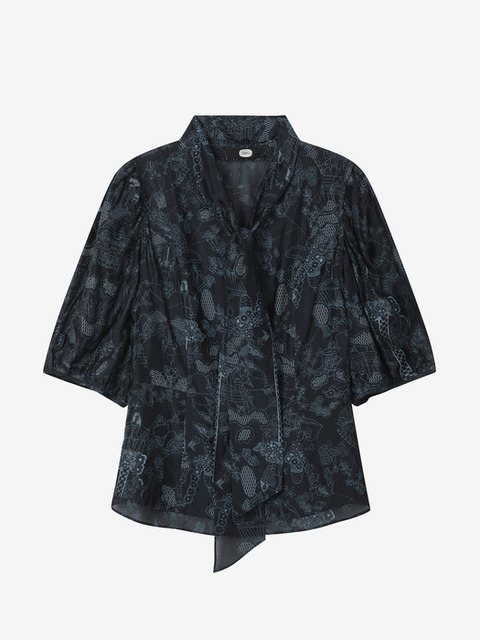 [듀엘] 캣프린트 타이 블라우스 NY_D253MSC022