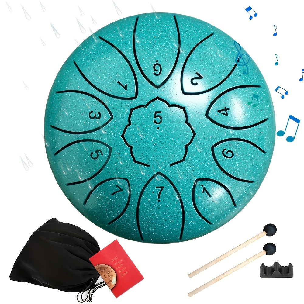 TEMU 야외 정원 레인 드럼 세트, 스틸 텅 드럼, 에더리얼 드럼, 3인치 6음계. 이 휴대용 타악기에는 탄소강 재질로 제작되었으며, 드럼 스틱, 악보, 배우기 쉬운 가이드, 드럼 세트가 함께 제공됩니다.