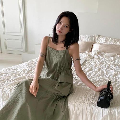 [옷자락] 여성 일상복 편안한 카고 스트랩 롱드레스