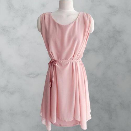 [옷자락]여성 슬림핏 허리끈 쉬폰 민소매 미니 드레스