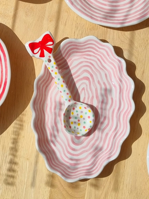 [들꽃세라믹] 핑크 스트라이프 레이스 접시