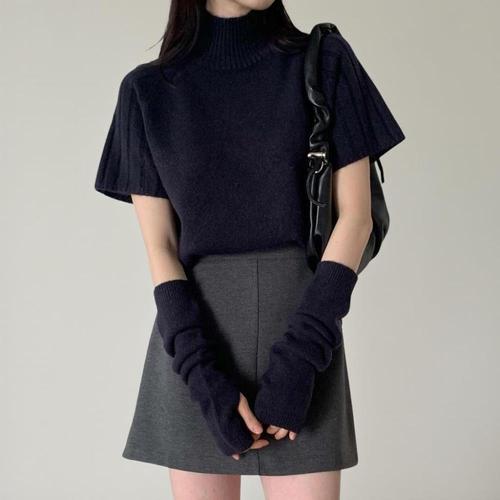 [다잇템][다잇템] 여성용 컬러기모 하이넥 반소매 민무늬 탑_23705136_588872