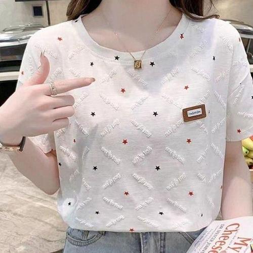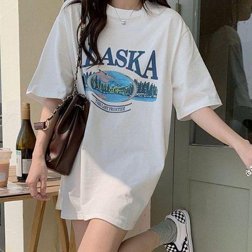 [에이치플러스몰]여성용 여름 라운드 반팔 프린트 티셔츠 데일리웨어
