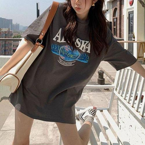 [에이치플러스몰]여성용 오버핏 여름용 캐주얼 반팔 티셔츠