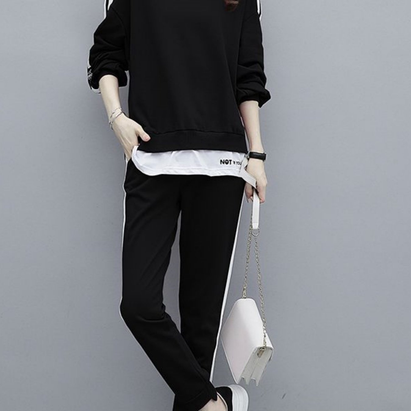 TEMU 2025년 신상 대형 사이즈 인스 트렌디 캐주얼 스포츠 수트 스웨터 바지 패션 투피스 세트 루즈