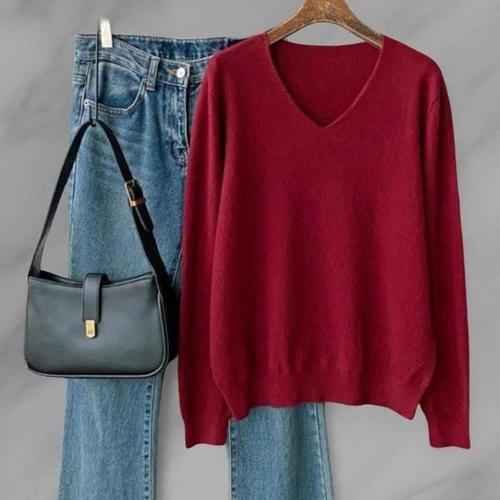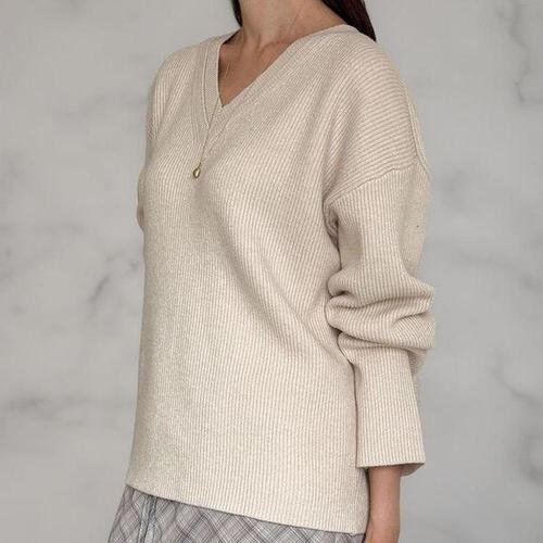[옷자락]여성 심플 비스코스 브이넥 루즈핏 긴팔 니트