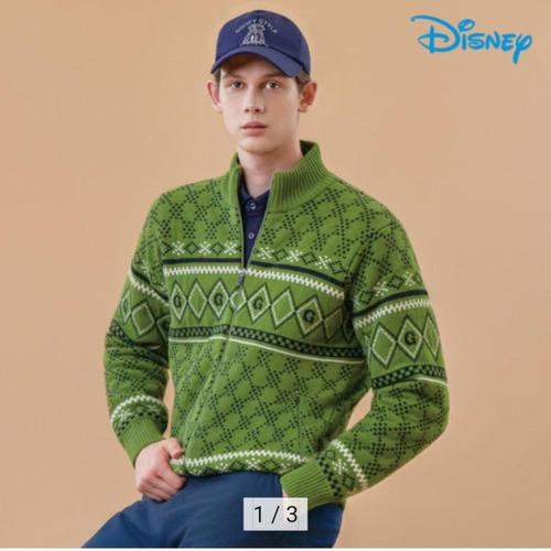 [하프클럽/디즈니골프]남성 배색 패턴 니트 반집업 점퍼 DM4MKG032