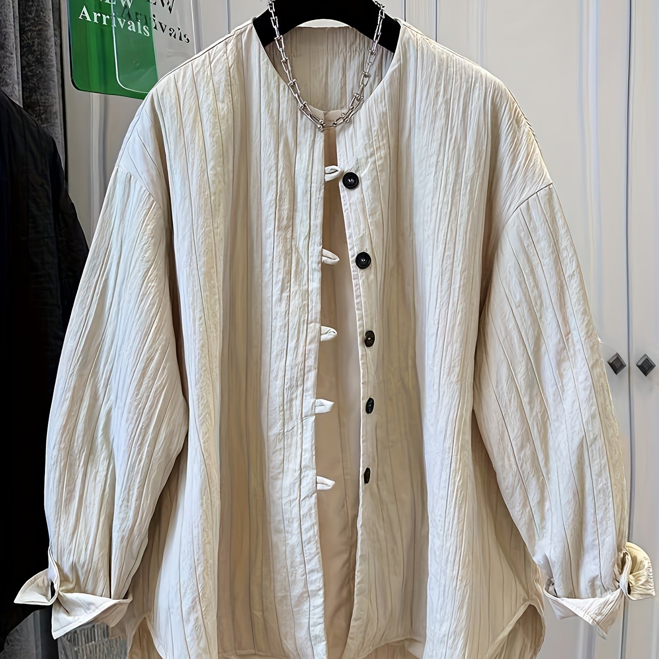 TEMU 여성용 베이지 재킷 - 우아한 버튼 프론트 코트, 긴 소매, 구조적 루즈핏 , 사무실 및 캐주얼/포멀 이벤트용 - 봄/가을 아우터웨어, 다재다능한 레이어링, 질감 있는 원단, 마감, 스타일리시 아우터웨어, 오피스 의상