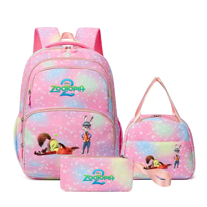 3pcs 디즈니 Zootopia 2 Schoolbag 연필 케이스 점심 가방 학생을위한 설정 만화 인쇄 배낭 펜 가방 정장 선물
