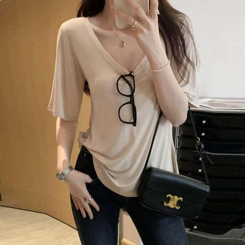 [오너클랜]인기상품 여성용 딥브이넥 루즈핏 반팔 티셔츠 여름옷 [WFLKX9L_260304]