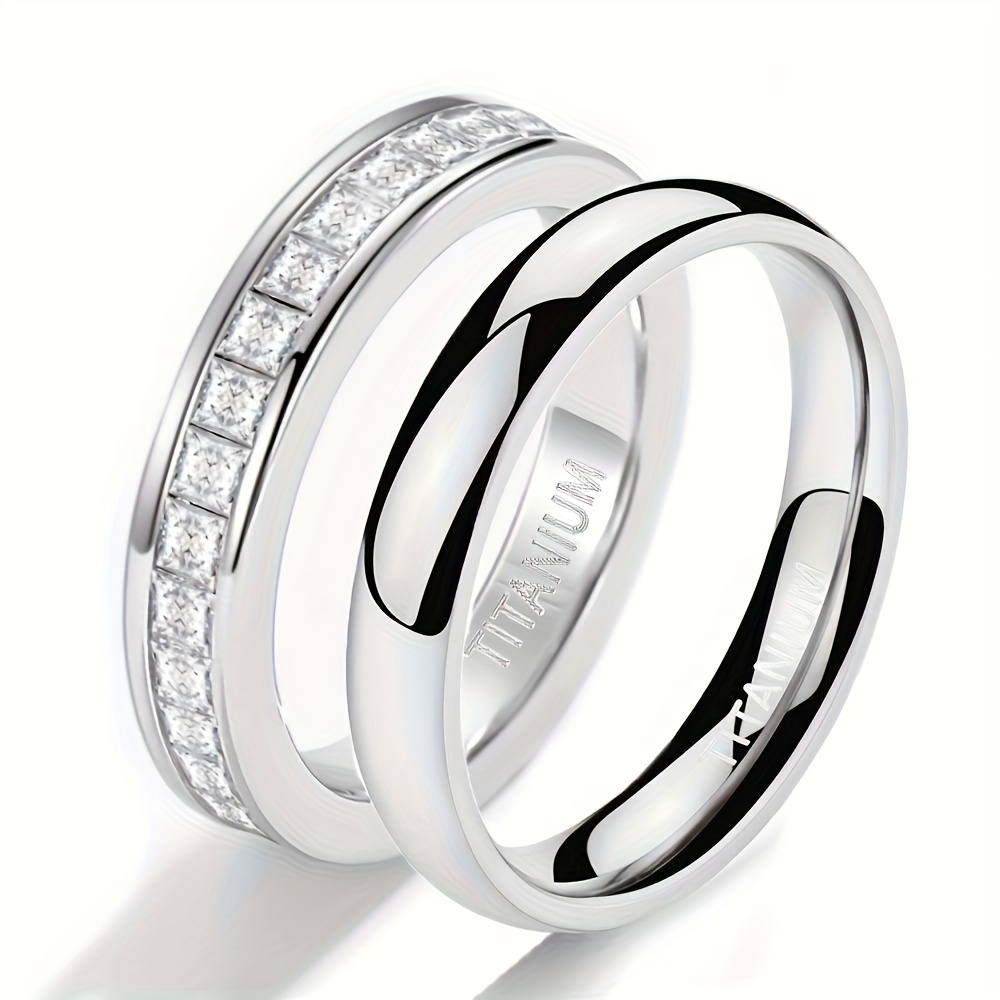 TEMU 세련되고 미니멀한 디자인의 큐빅 합성 지르코늄 반지 한 쌍. 남녀 모두에게 결혼이나 약혼 반지로 완벽하며, 훌륭한 선물이 될 것입니다.