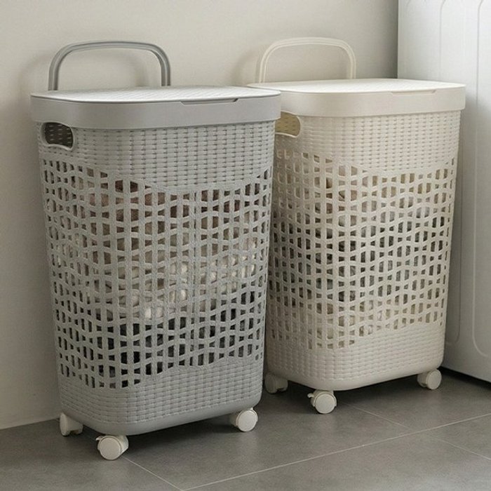 이동식 바퀴 손잡이 통풍 메쉬 뚜껑 세탁 빨래바구니