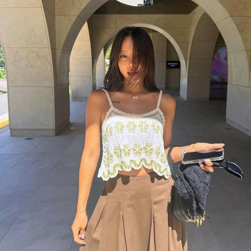 여자 뜨개 바캉스룩 콘트라스트 꽃무늬 SS 나시
