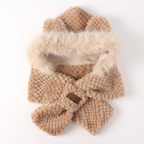 TEMU 1개 - 여성용 스카프 포함 라인드 비니, 귀여운 볼 귀마개 두꺼운 따뜻한 모자 가을 겨울용