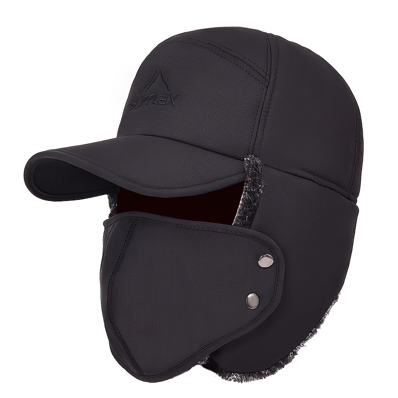 TEMU 1개 남성용 두꺼운 인조 가죽 트래퍼 모자, 인조 퍼 트림 - 방풍 및 귀마개 디자인, 눈 덮인 날씨용, 그를 위한 이상적인 선물, 겨울 모자|남자모자