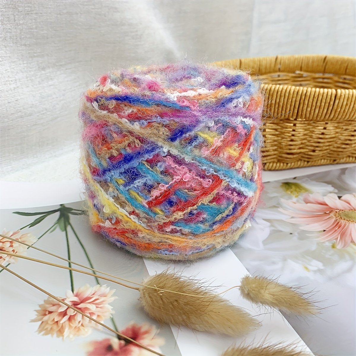 TEMU 100그램의 혼합 털실입니다. 기계 뜨개질, 손뜨개질 및 코바늘 뜨개질에 적합합니다. 이 특별한 루프형 플러시 털실은 반짝이는 무지개 효과를 가지고 있으며, 고품질의 부드러운 청키 소재로 제작되었습니다. 코바늘 가방, 모자, 스카프 제작에 완벽합니다.