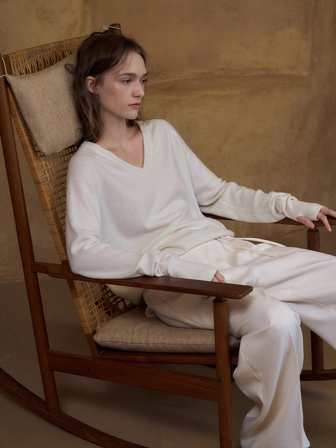 [라메레이] 캐시미어 30% 브이넥 니트탑_크림