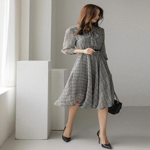 [다잇템][다잇템] 여자 시폰 리본보우 격자 레이어드원피스 비침 롱원피스_16601831_588872
