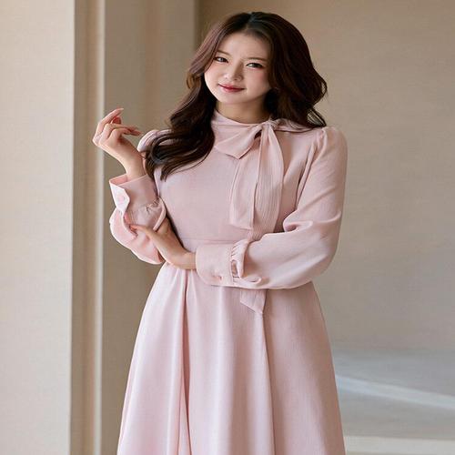 [스타일온미][스타일온미] 에리엘 리본넥 요루 쉬폰 여리여리 A라인 플레어 롱 원피스