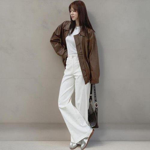 [다잇템]여성 카라 빅사이즈 자크 무드 키치 레더 자켓