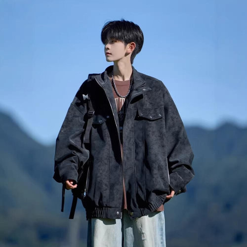 [엠클로]남자 오버핏 빅사이즈 스웨이드 양털 뽀글이 무스탕 라이더 자켓 점퍼