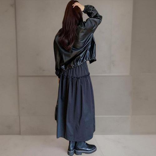 [옷자락]여자 트랜디룩 FW 가죽 집업 레더 빅사이즈 탱크 자켓