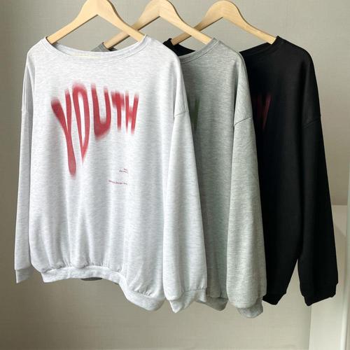 [옷자락]여자 오버핏긴팔 가을 오프숄더 프린팅 루즈 맨투맨