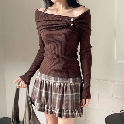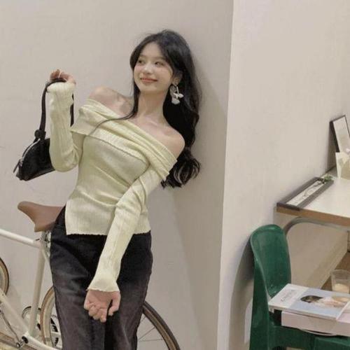 TEMU 여성용 캐주얼 솔리드 컬러 오프숄더 긴팔 티셔츠