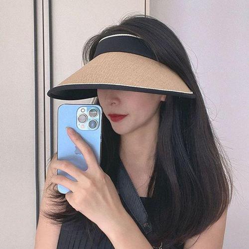 [에이치플러스몰]라피아소재 자외선차단 썬캡 돌돌이 모자 여름 바캉스