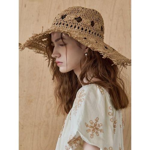 [마쟈]빈티지 내추럴 펀칭 와이드 라피아 플로피햇