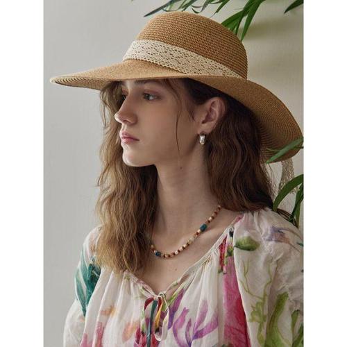 [마쟈]레이스 리본 와이드 라피아 플로피햇