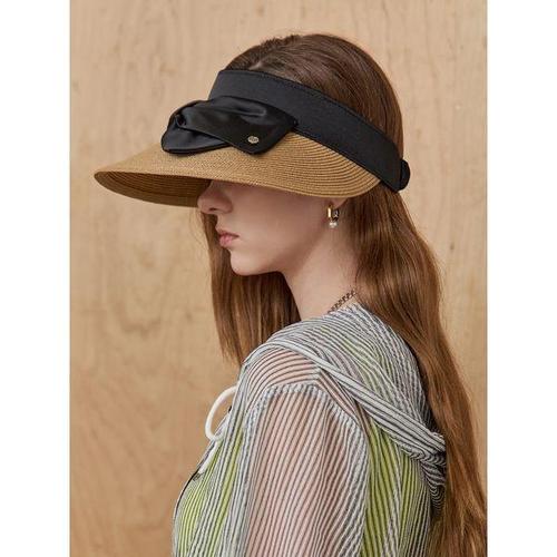 [마쟈]블랙 빅 리본 라피아 썬바이저