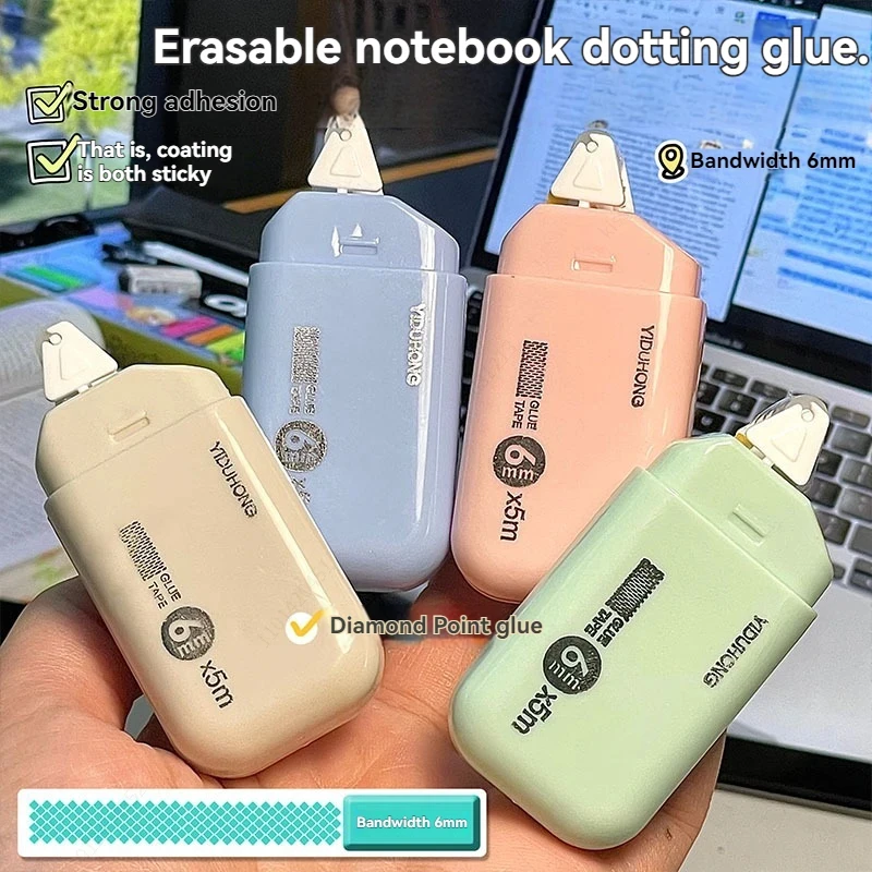 귀여운 점 접착제 테이프 양면 접착 롤러 어린이를위한 푸시 가능 및 리필 가능 소녀 DIY 사진 앨범 학교 문구 용품