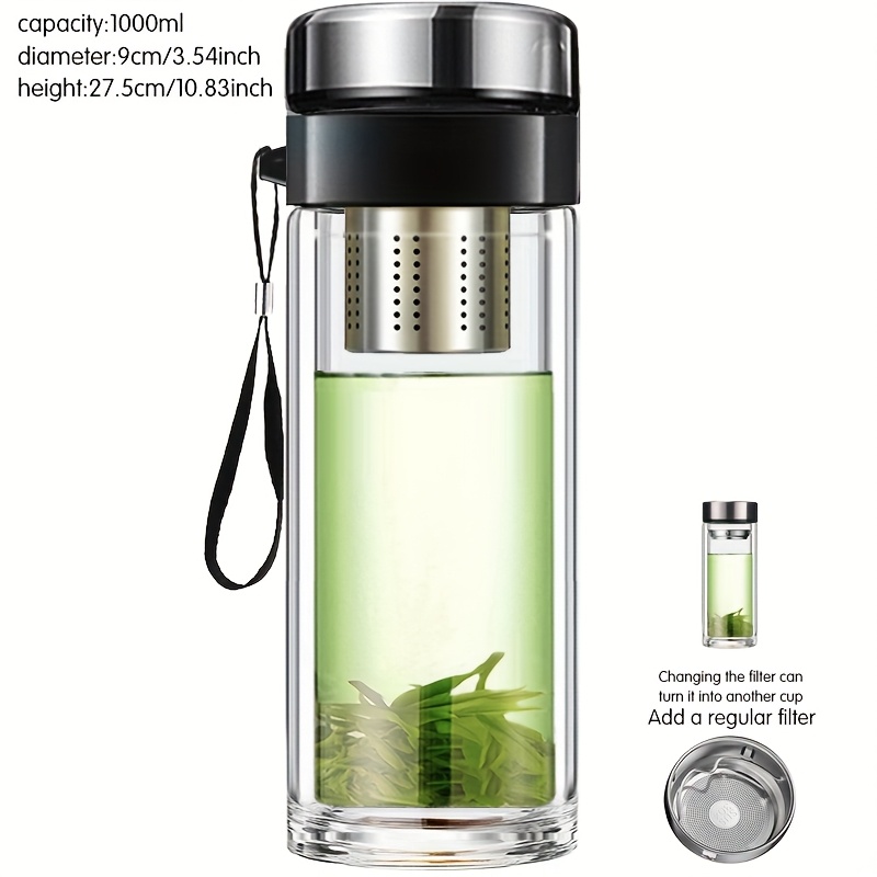 TEMU 1개 이중 유리컵, 차 우려내기, 차 필터링, 보온, 누수 방지, 밀폐 물컵, 대용량, 내열성, 투명, 짧고 두꺼운 컵, 우유, 커피, 맥주컵, 야외용, 휴대용