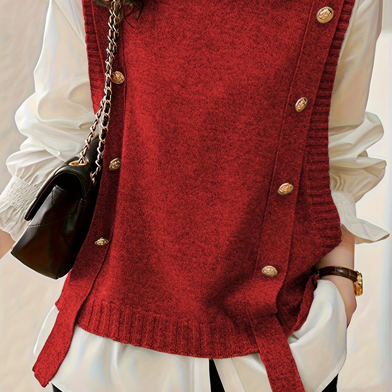 TEMU 아름다운 V넥 니트 베스트, 버튼 장식이 있는 폴리에스터로 제작되었습니다.